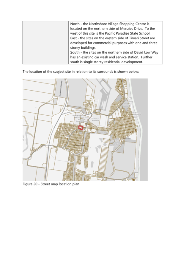 The proposed development seeks to establish a 31.3 metre tall monopole and ground-based equipment, located on land included within the Rural zone at the western edge of the Woombye township and located in close proximity to residential zones and residential uses. The applicant has acquired Optus as the carrier to provide network services to Woombye and surrounds.