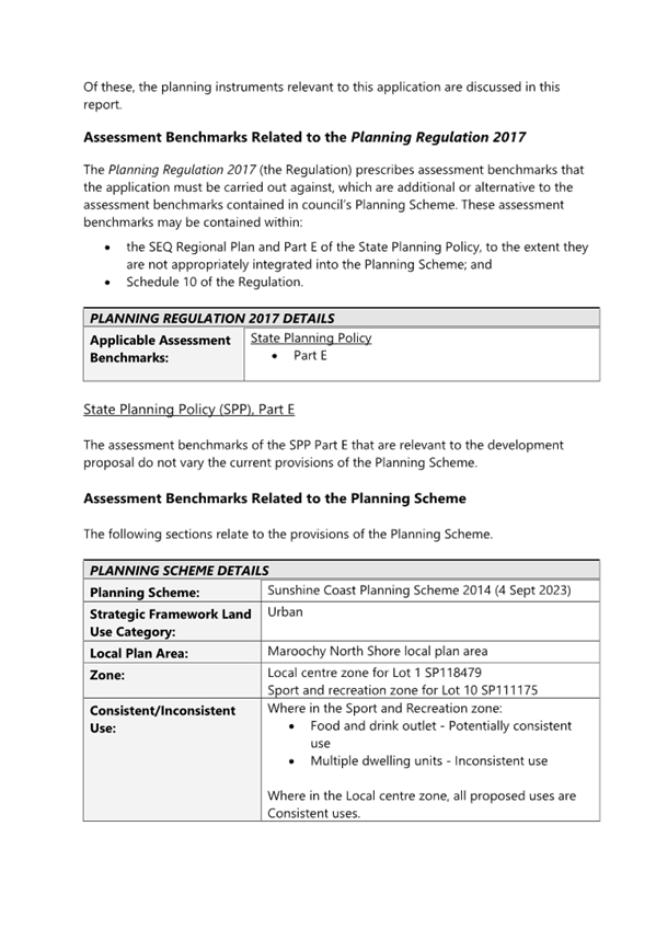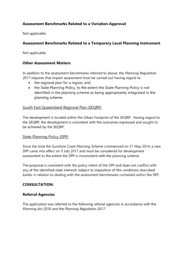 vii. The proposal has not demonstrated achievement of the following Assessment Benchmarks of the Sunshine Coast Planning Scheme 2014: