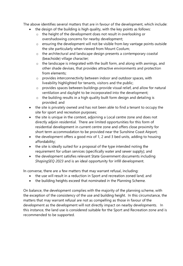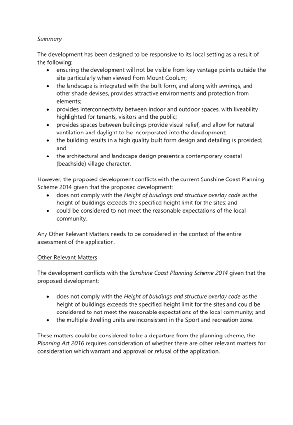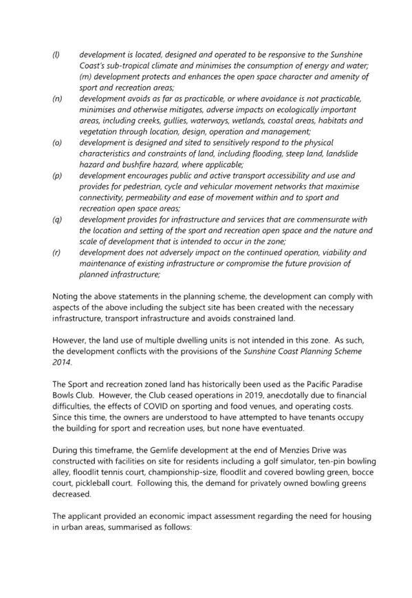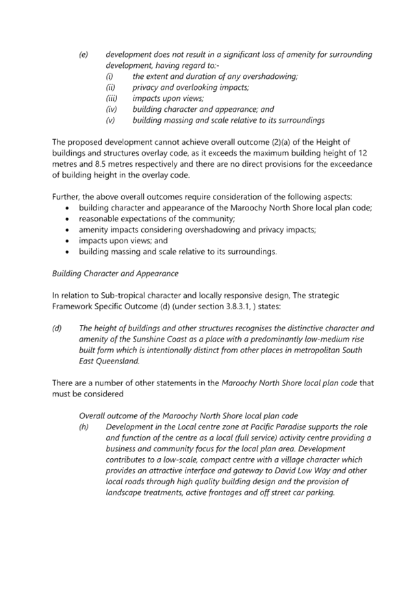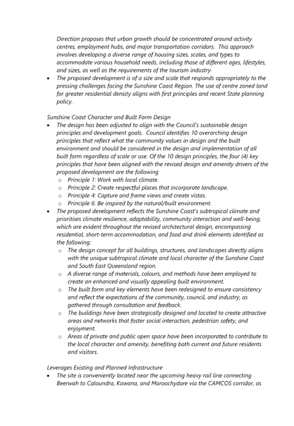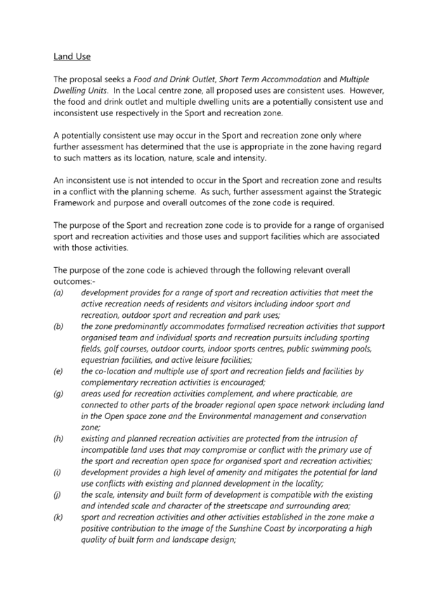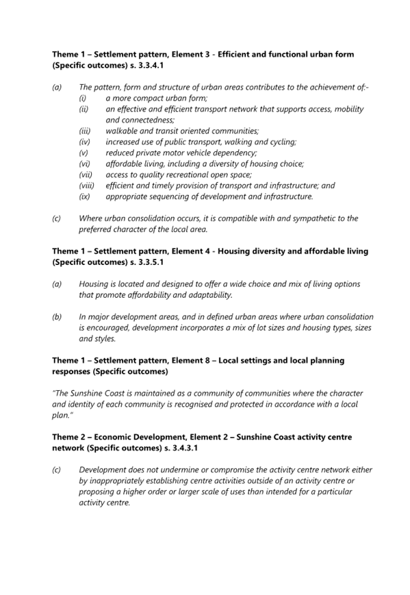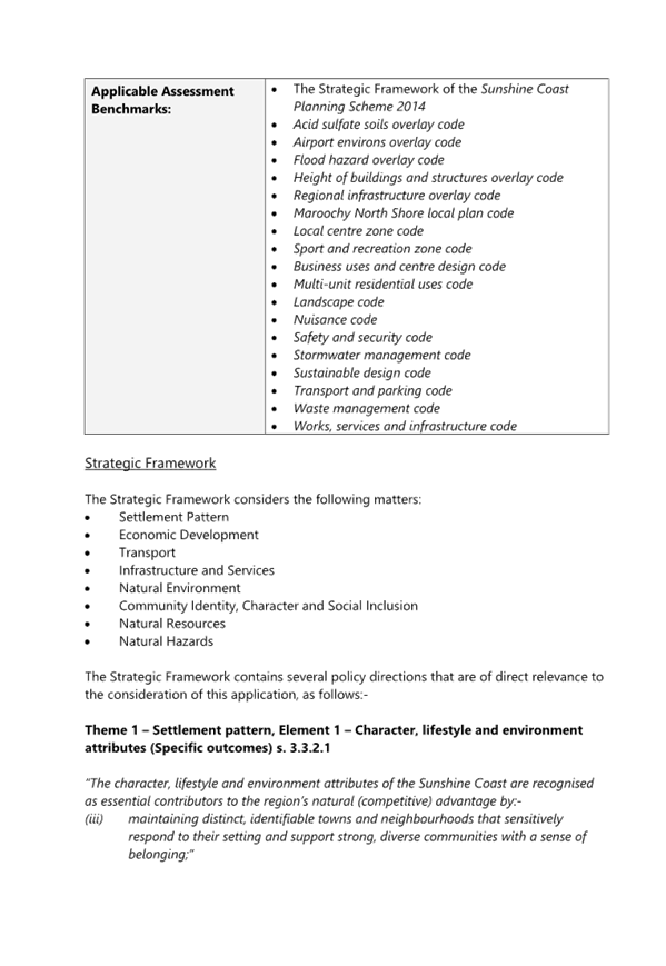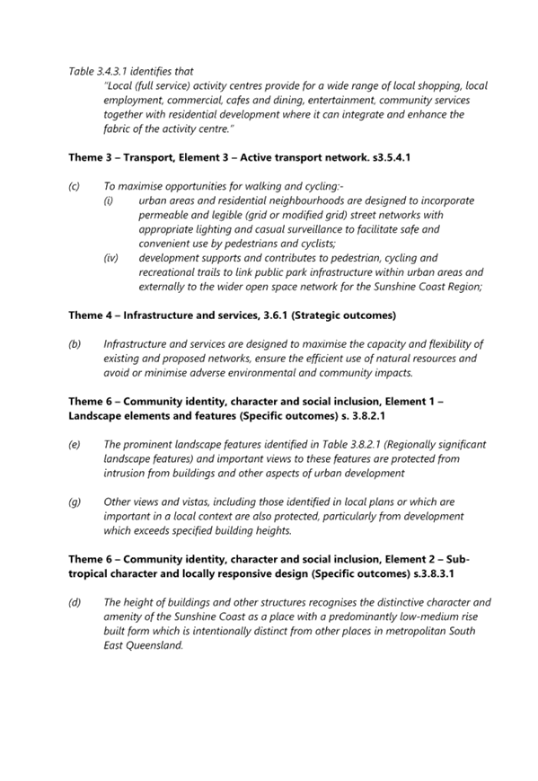 vi. The proposal has not demonstrated achievement of Strategic Outcomes 3.6.1(b) and 3.8.1(g) and Specific Outcomes 3.6.2.1(e), 3.6.2.1(i) and 3.6.7.1(c) of the Strategic Framework of the Sunshine Coast Planning Scheme 2014.