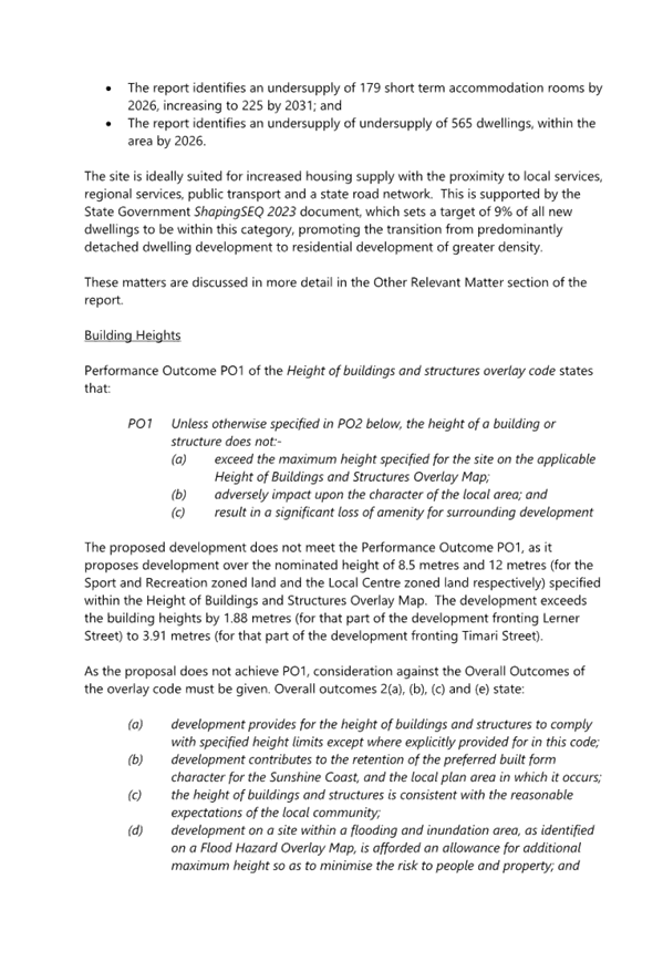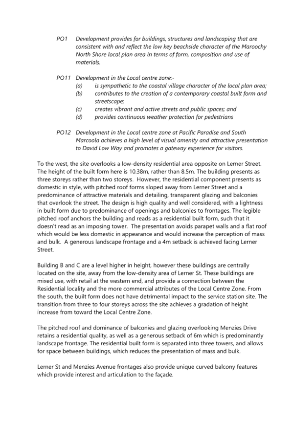 b) The Purpose and Overall Outcome 2(c) and Performance Outcome PO1 of the Woombye local plan code and