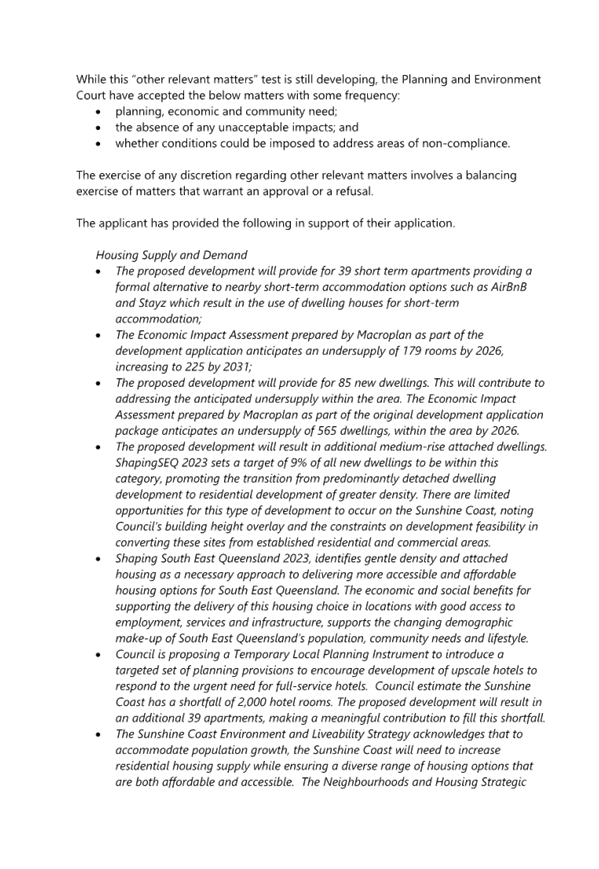 It is considered that there are no other relevant matters applicable to the application, including the existence of planning, economic or community need, that justify approving the application despite the non-compliances described within this report.