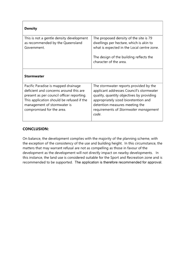 The application does not comply with, nor can it be conditioned to comply with, a number of the assessment benchmarks contained within the Sunshine Coast Planning Scheme 2014, including the Strategic Framework, the Rural zone code, the Woombye local plan code and the Telecommunications facility code. The areas of conflict relate to impacts on visual amenity and rural character.