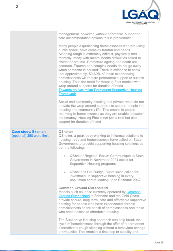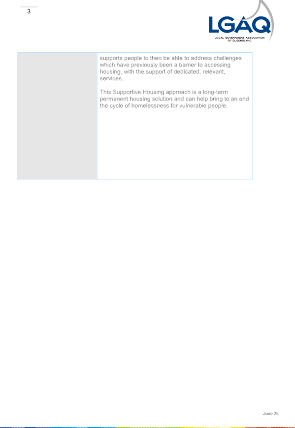 Ordinary Meeting Agenda Item 8.7 Motions for the 2025 Local Government Association of Queensland Annual Conference Attachment 1 Supported accommodation models for people experiencing homelessness with complex needs |